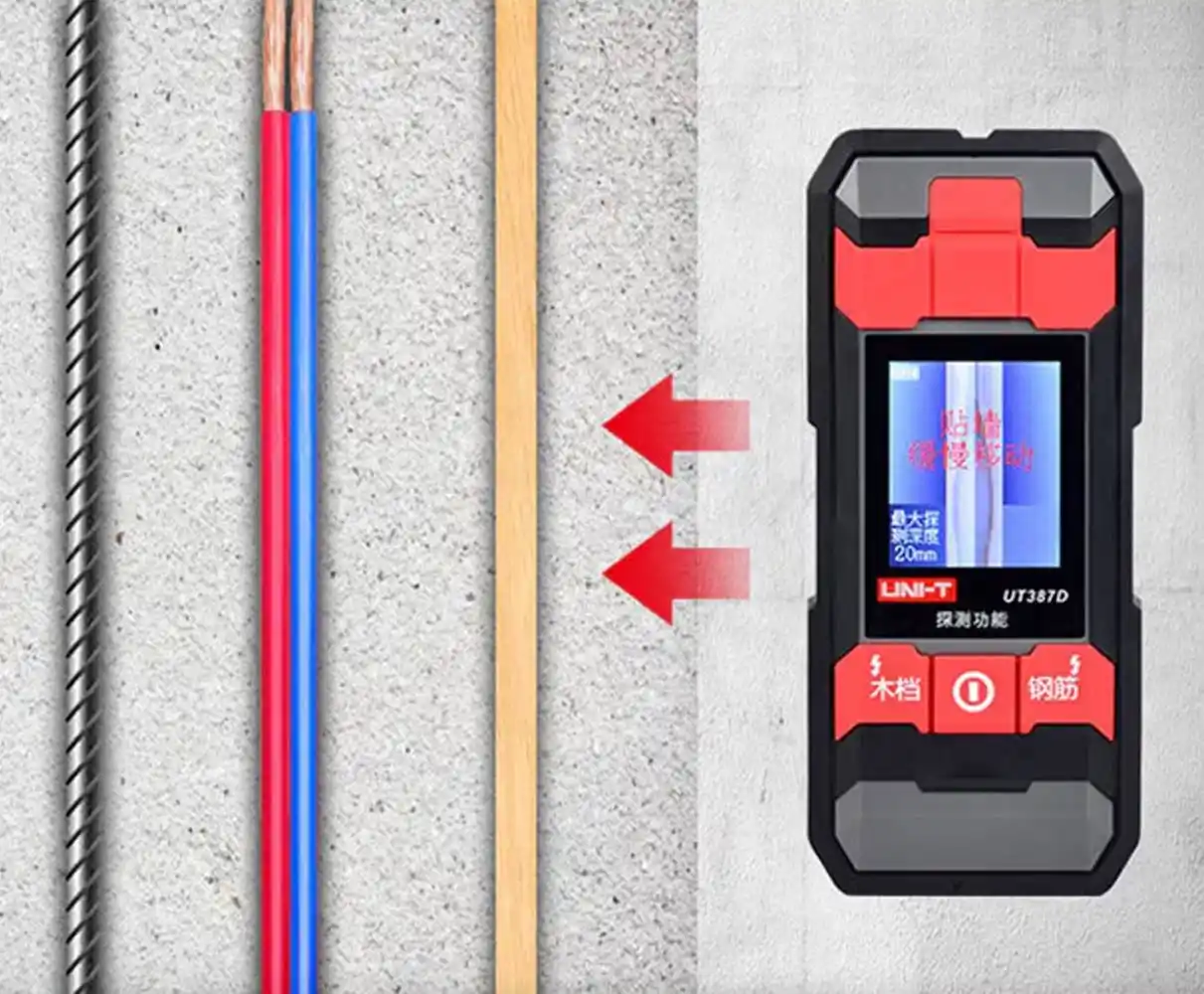 Uni-T UT387D Duvar Tarayıcı; duvar arkasındaki ahşap, metal ve canlı voltaj hatlarını hassas bir şekilde tespit ederek delme işlemlerinde tam güvenlik sağlar.
