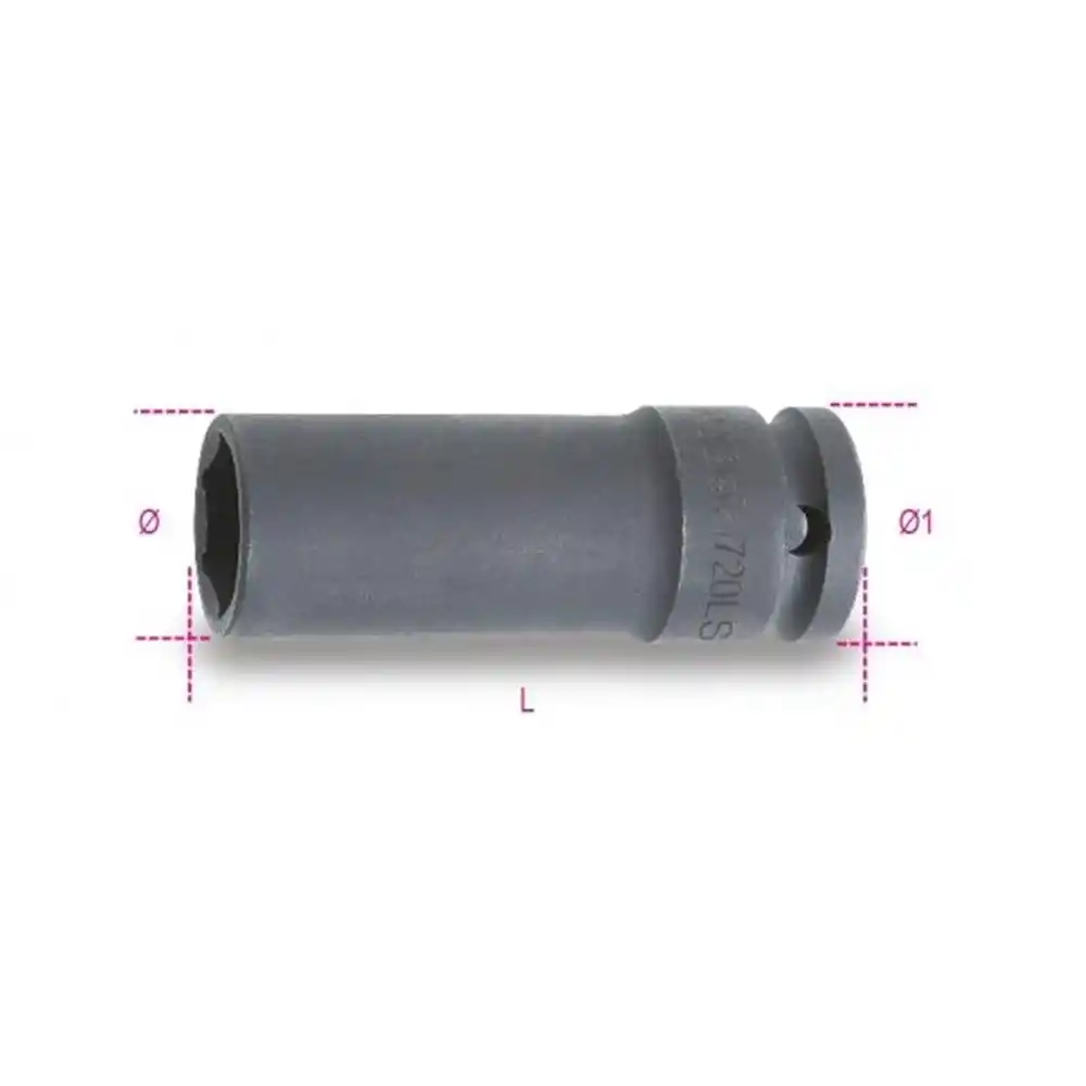 Beta 720LS 16mm, darbeli havalı anahtarlar (impact wrench) ile kullanılmak üzere özel olarak üretilmiş, uzun ve ince cidarlı bir lokma anahtardır. 1/2" (12.7 mm) kare sürücü girişine sahip olan bu lokma, yüksek alaşımlı çelikten imal edilmiş ve darbe direncini artırmak için ısıl işlem görmüştür. Altıgen (esagonale) ağız yapısı, somunu güvenle kavrar.