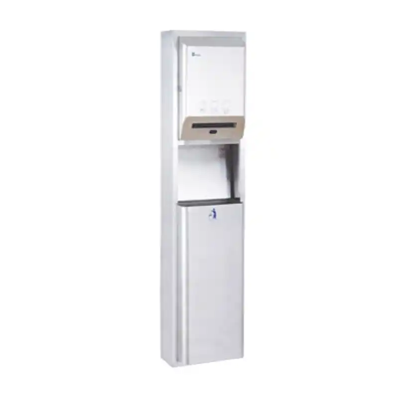 Xinda GSG63E-R, el kurutma ve atık yönetimini tek bir dikey sütunda toplayan, tam otomatik ve sıva üstü montajlı bir hijyen ünitesidir. Üst bölümde yer alan akıllı fotosel sensörü, kullanıcı elini yaklaştırdığında rulo kağıt havluyu otomatik olarak sunar. Bu "temassız" çalışma prensibi, ortak kullanım alanlarında çapraz bulaşma riskini ortadan kaldırarak maksimum sterilizasyon sağlar.