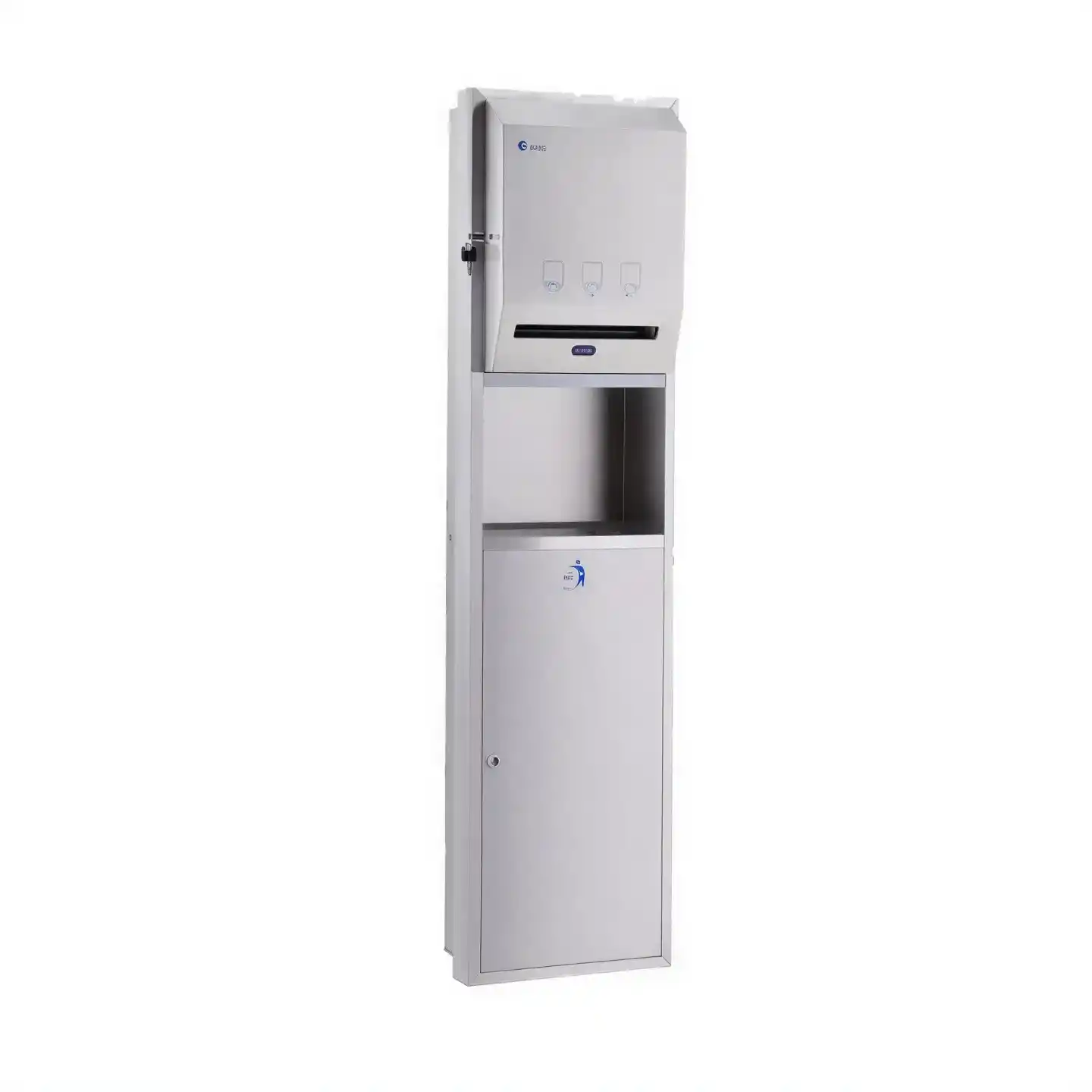 Xinda GSG63S, duvar içine kısmen gömülerek monte edilen (yarı ankastre), tam otomatik fotoselli rulo kağıt dispenseri ile atık çöp kovasını dikey bir sütunda birleştiren profesyonel bir hijyen istasyonudur. Bu ünite, tam ankastre modeller için duvar derinliği yetersiz olan ancak sıva üstü modellerin dışa doğru yaptığı çıkıntıyı da istemeyen mekanlar için "altın orta" çözümü sunar.