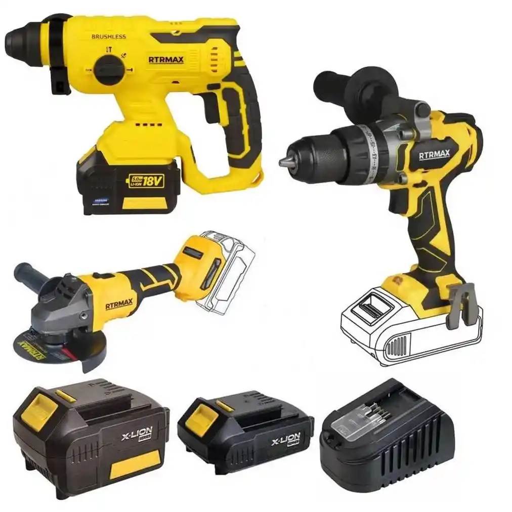 Rtrmax X-Lion 3’lü Set; inşaat ve endüstriyel bakım işlerinin üç ana temel taşını (kırma, delme, kesme) bir araya getiren kapsamlı bir profesyonel çözümdür. Set içerisinde yer alan RTX2095B Kırıcı Delici, beton ve sert zeminlerde kırım/delim yaparken; RTX3010B Darbeli Matkap yüksek torklu vidalama ve montaj işlerini, RTX3060B Avuç Taşlama ise metal ve taş kesimlerini üstlenir.