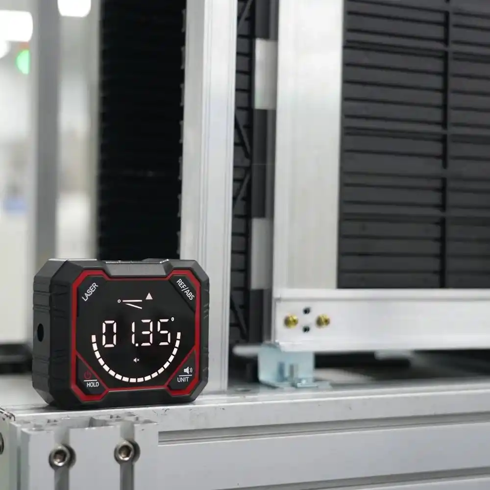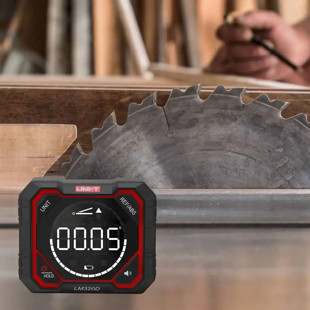 Uni-T LM320E, yüzeylerin eğim ve açı değerlerini ±0.1° hassasiyetle dijital olarak ölçen, çift taraflı lazer işaretleme ve dört yönlü manyetik tabana sahip profesyonel bir dijital inklinometredir.