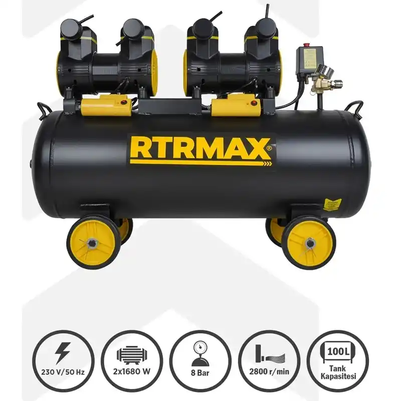 1 Adet RTM7460 Yüksek Hızlı Yağsız Hava Kompresörü 100 Lt 4.0 Hp 8 Bar